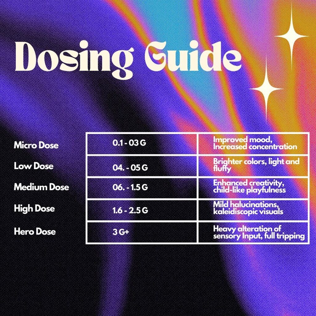 - Heroic dose: For deep ceremony and surrender guided by strong intention and safe space
